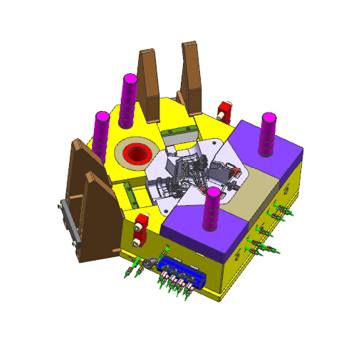 行位数量:2,滑块座两侧采用斜拉板代替斜导柱结构,使滑块活动时受力更均衡平稳。