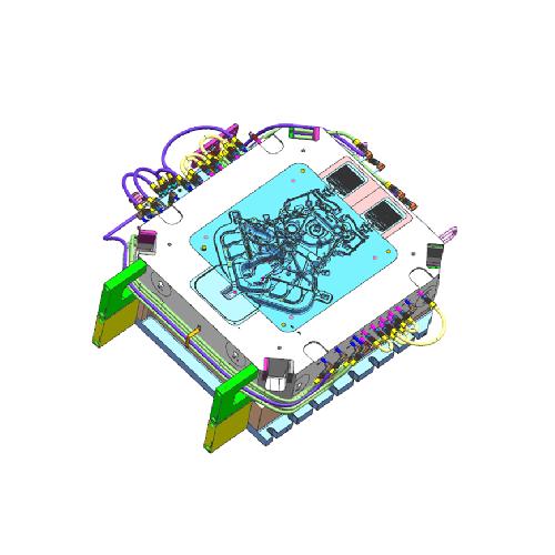 模具特点:1. 抽芯数量较多;2. 对产品气孔的要求非常严格;3. 采用点式水冷控制系统。