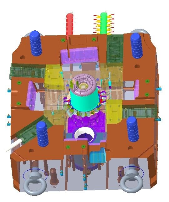 模具特点:1、油温控制系统冷却 2、产品具有深腔设计